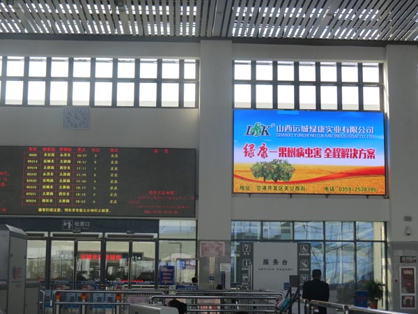 近幾年,隨著運城市的快速發(fā)展,東部逐漸被開發(fā)利用,機場、高鐵站、客運站也依次坐落于運城東部,地理優(yōu)越,交通便利。2015年10月,綠康公司在運城高鐵站投資的廣告牌投入使用,高鐵站人流量大,廣告牌處于入站口處,位置醒目。在進(jìn)一步加大公司知名度的同時,也彰顯了綠康公司在山西省農(nóng)作物病蟲害防治方面的地位。