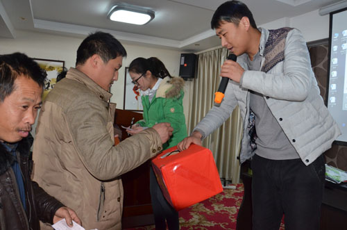 會(huì)議中由張老師為果農(nóng)朋友講解果樹(shù)種植管理技術(shù),果農(nóng)朋友全都被張老師豐富的果樹(shù)管理技術(shù)所吸引,還有宋老師的套餐分析,讓果農(nóng)紛紛稱贊其農(nóng)藥知識(shí)的專業(yè)性,直到指導(dǎo)老師分享完果農(nóng)們還意猶未盡。隨后,訂貨開(kāi)始,2015年在臨猗建立的套餐示范園中,果農(nóng)們普遍反映效果較好,再加上直營(yíng)部******的技術(shù)服務(wù),果農(nóng)們沒(méi)有過(guò)多猶豫,紛紛掏錢預(yù)定套餐,并獲得抽獎(jiǎng)資格。