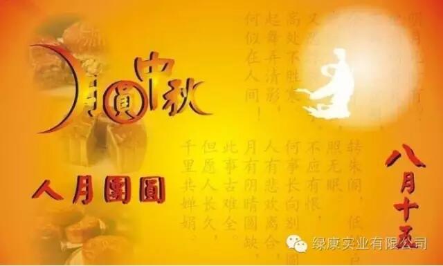 還有兩天就是農(nóng)歷的八月十五,在此佳節(jié)來臨之際,山西運(yùn)城綠康實(shí)業(yè)有限公司董事長(zhǎng)王章修攜公司全體員工,祝愿我們的合作伙伴們佳節(jié)團(tuán)圓,家庭和睦,“月”來越好!
