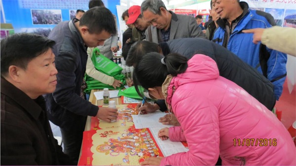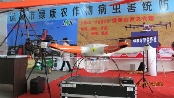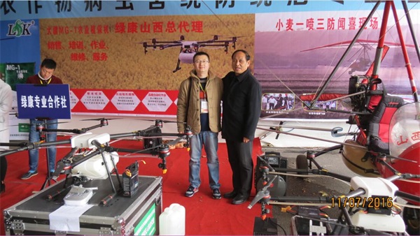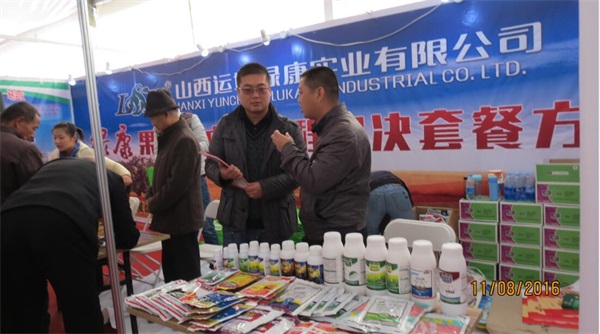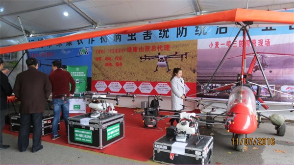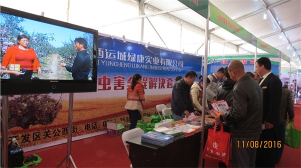山西運城綠康實業(yè)有限公司對這次農展會非常重視,重點打造了兩大參展主題:一是在農展館以北300米左右的農資展廳設立了一個展位,主要用于綠康農作物病蟲害統(tǒng)防統(tǒng)治合作社展示飛防機械:美國原裝進口安塔瑞斯MA-34 R582XB農藥噴酒飛機2架,同時還配備各種地面防治機械設備多臺,大疆MG-1農藥植保機三臺,工作人員向前來咨詢的群眾發(fā)放相關宣傳資料,熱情詳細介紹并現(xiàn)場進行試飛表演,不少群眾看完以后怦然心動,紛紛向工作人員了解價格及使用方法。二是在相鄰的農資展館設立了一個大展臺,展臺上下,綠康的各種農藥、資料擺放整齊,工作人員在現(xiàn)場向果農發(fā)放資料袋,內裝有相關農藥的性能、用途等宣傳資料,附贈有一張財神爺?shù)哪戤嫛V睜I部的劉杰一經理耐心的手把手教給果農掃描年畫下方的二維碼,并接受果農現(xiàn)場技術咨詢,綠康工作人員誠懇的態(tài)度和周到的服務受到參展果農的一致好評。