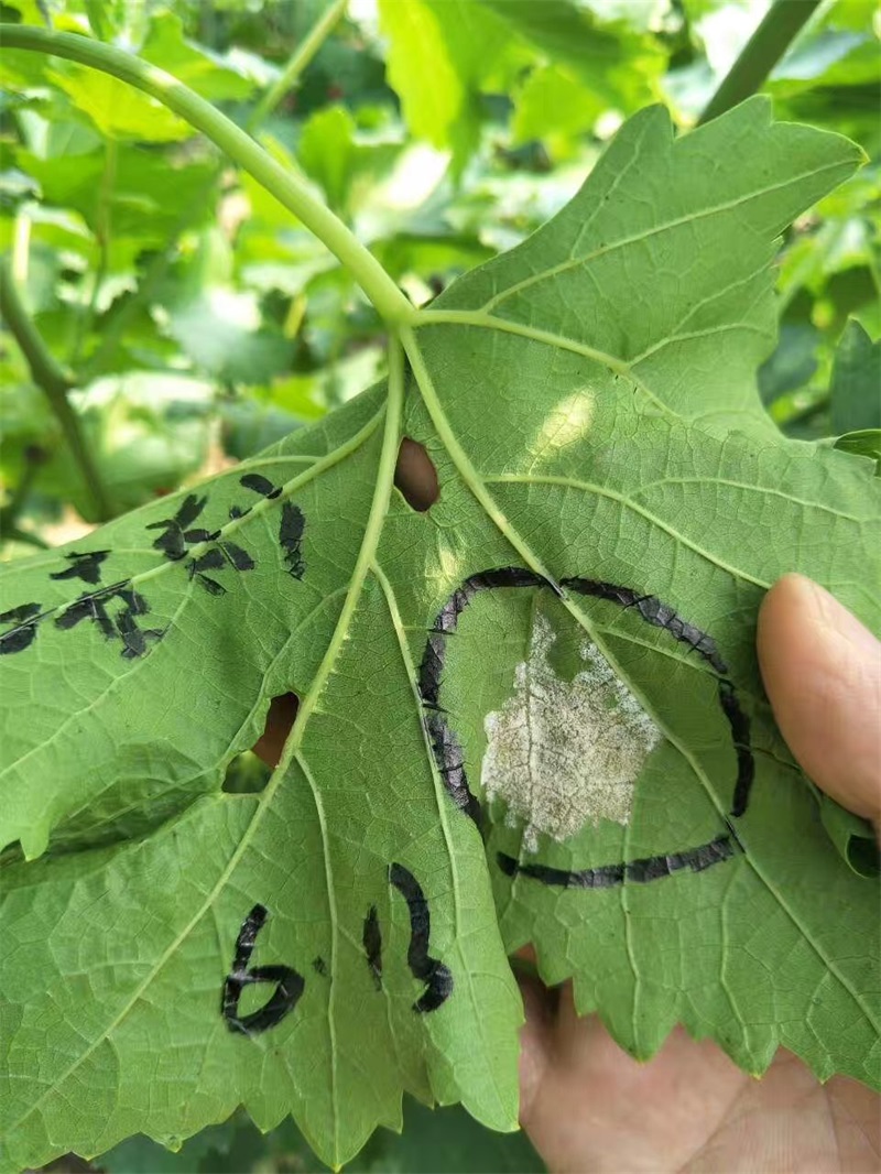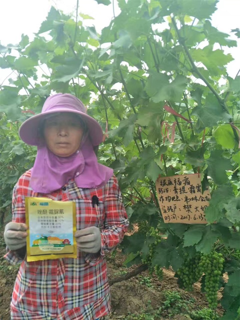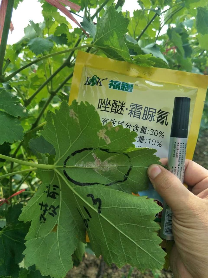 眾所周知,陜西省渭南市葡萄種植面積在全國傲居前線,作為葡萄的重要病害——霜霉病一直是困擾種植戶的頭等病害,常規(guī)霜霉病產(chǎn)品主要以預(yù)防為主,******效果不是很明顯,尤其是霜霉病發(fā)病中后期,常規(guī)******劑基本沒效果,針對這種情況,綠康實(shí)業(yè)有限公司陜西片區(qū)業(yè)務(wù)經(jīng)理譚戰(zhàn)于6月13日,帶著公司新產(chǎn)品“福霜”深入葡萄種植戶樊大姐家的地里,挑選出一片霜霉病發(fā)病較重的地塊,展開了福霜針對霜霉病的效果驗(yàn)證。