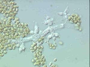 研究發(fā)現(xiàn)木霉菌會在特定環(huán)境里形成腐霉對灰霉病菌具有重寄生作用,它進入寄主菌絲后形成大量的分枝和有性結構,因而能抑制葡萄灰霉病癥狀的出現(xiàn)。