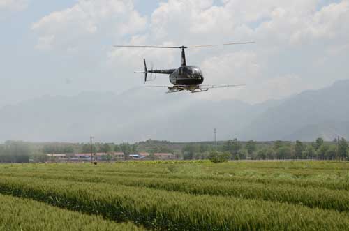 噴藥現(xiàn)場,在王總的指揮帶領(lǐng)下,飛防工作有條不紊的進行著,大家都各司其職,盡職盡責,我公司與其合作的青島翔龍通用航空公司,其噴藥直升機一次可攜帶300公斤藥液,兩個多小時可噴灑30000畝小麥,速度快,效率高,持效效果好,可有效解決防治力量不足、防治效率低等問題;還可以節(jié)約成本,飛防畝用打水量平均為40-50g/畝,大大節(jié)省了藥劑使用量和農(nóng)藥成本;飛防經(jīng)濟、******,可兼治多種病蟲害及蟲害,擁有廣闊的前景。