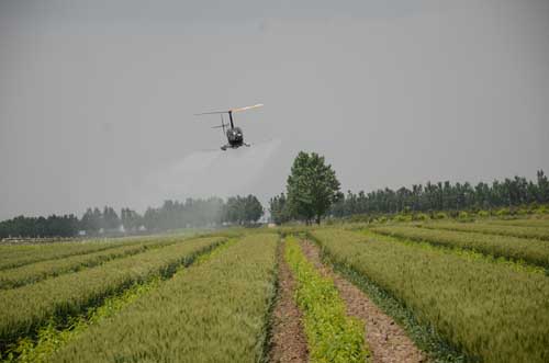 5月份是小麥形成產(chǎn)量的關(guān)鍵時期,也是病蟲害防治的關(guān)鍵時期。5月8日起,山西運城綠康實業(yè)有限公司利用專業(yè)化統(tǒng)防統(tǒng)治手段,在山西省聞喜、永濟、翼城、洪洞等地依次進行小麥蚜蟲飛防實驗,這次飛防地點的選定主要是農(nóng)田面積比較集中,且周圍村莊相對稀疏,沒有過高建筑物的地方,非常適合飛機噴藥的田塊進行。